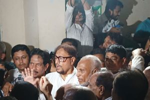 রায় ঘোষণার পর চট্টগ্রাম আদালত চত্বরে বিএনপির নেতা–কর্মীদের সঙ্গে শাহাদাত হোসেন।